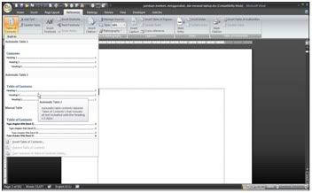 Kali ini saya akan mencoba membuat daftar isi dan daftar gambar secara otomatis di Mirosoft Word 2007. Tidak perlu keahlian khusus atau kursus computer, kita manfaatkan fasilitas yang langsung tampak di hadapan kita.
