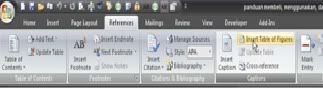 - Setelah semua selesai, letakkan kursor di bawah daftar isi. Kemudian, pada tab References, grup Insert Caption, klik Insert Table of Figures.