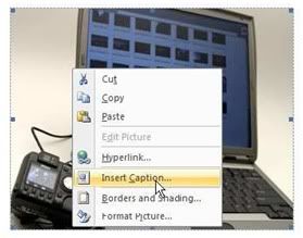- Setelah semua gambar dalam posisi In line with text, kembali ke gambar pertama. Klik kanan gambar > Insert caption.